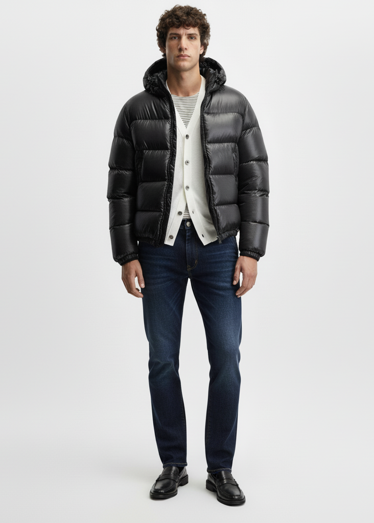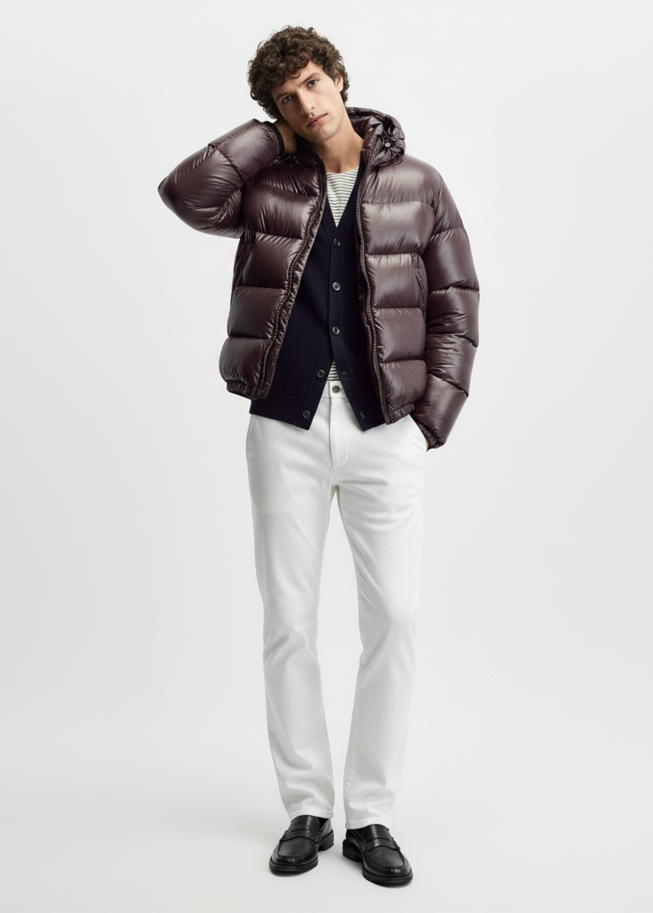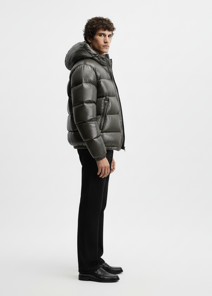 Als Teil der neuen Herbst/Winter 25 präsentiert sich die Marmo Daunenjacke als Balance aus Funktion und Stil. Gefertigt aus einem strukturierten Polyester-Wollgewebe, vereint sie leichte Wärmeisolierung mit einer klaren, modernen Stil und dezentem Glanz für einen zeitlosen Auftritt.
